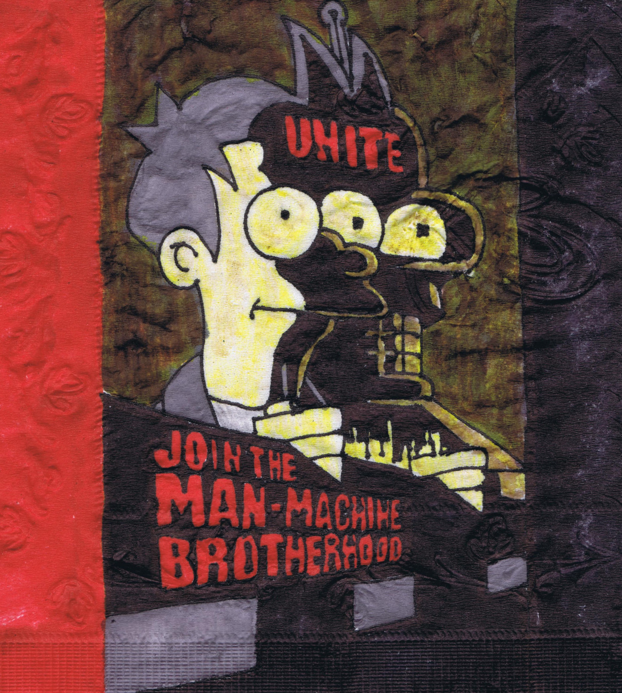 Let’s all join! Man-Machine napkin art. 3012