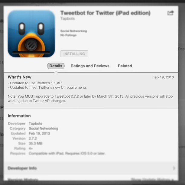 You must upgrade by March 5th. All previous versions will stop working due to #TwitterAPI changes.